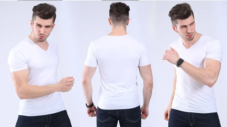Men’s t-shirt thin section short-sleeved summer ice silk without trace Slim stretch V-neck solid color bottoming t-shirt slim
